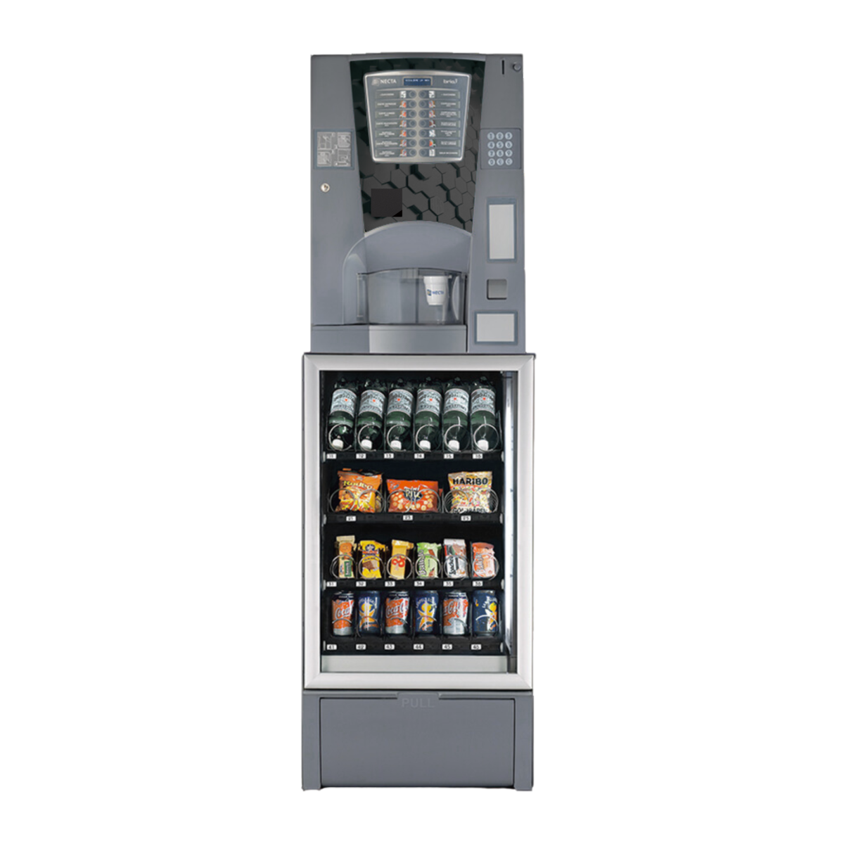 - Tipologia: Distributore automatico combinato (bevande calde/solubili + snack/freddo)